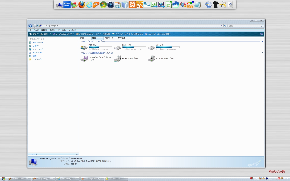 上記のデスクトップ画像にある、Mac風のアプリケーションランチャー。それがRocketDock。これのダウンロード・インストールはFreesuftComeさんのページをご覧下さい。以上、デスクトップをカスタマイズするソフトの紹介でした。Windowsの標準の画面に飽きたら、気分転換に試して下さい。少し楽しくなります。